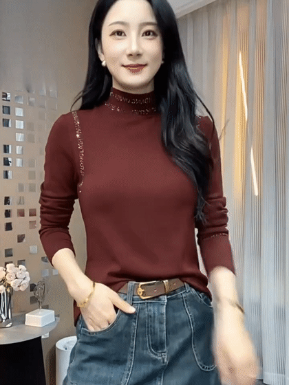【รุ่นใหม่ฤดูใบไม้ร่วง】เสื้อแคชเมียร์ประดับเพชรเรียบหรูสำหรับคุณแม่