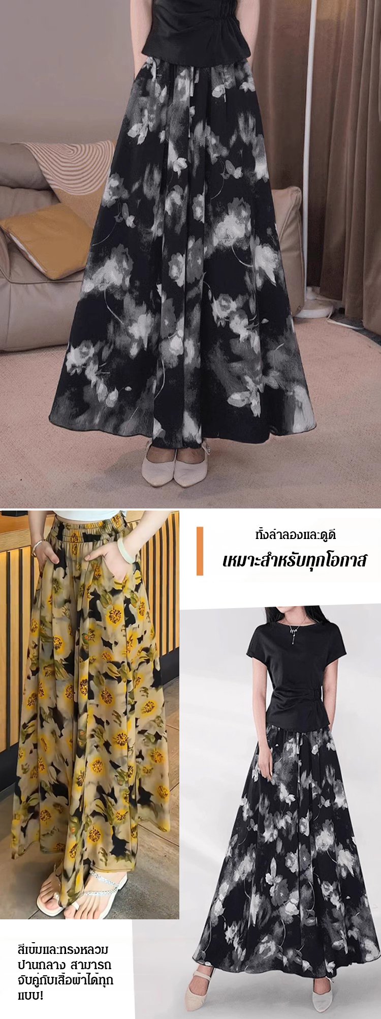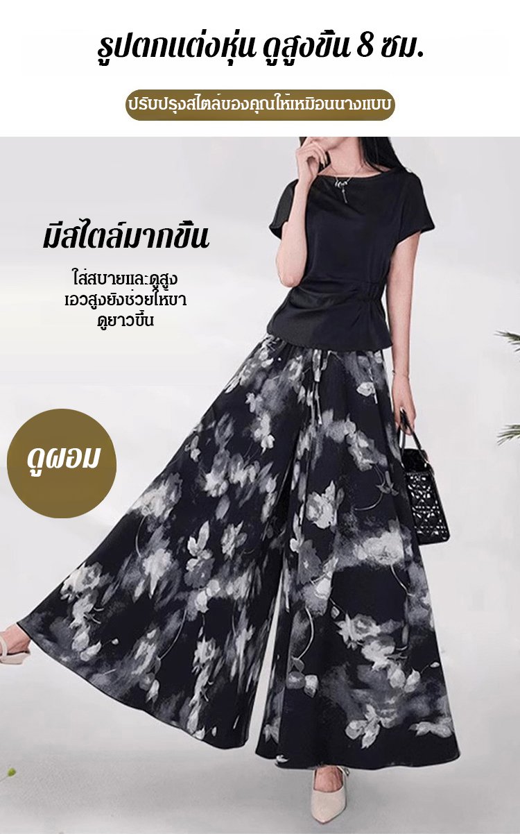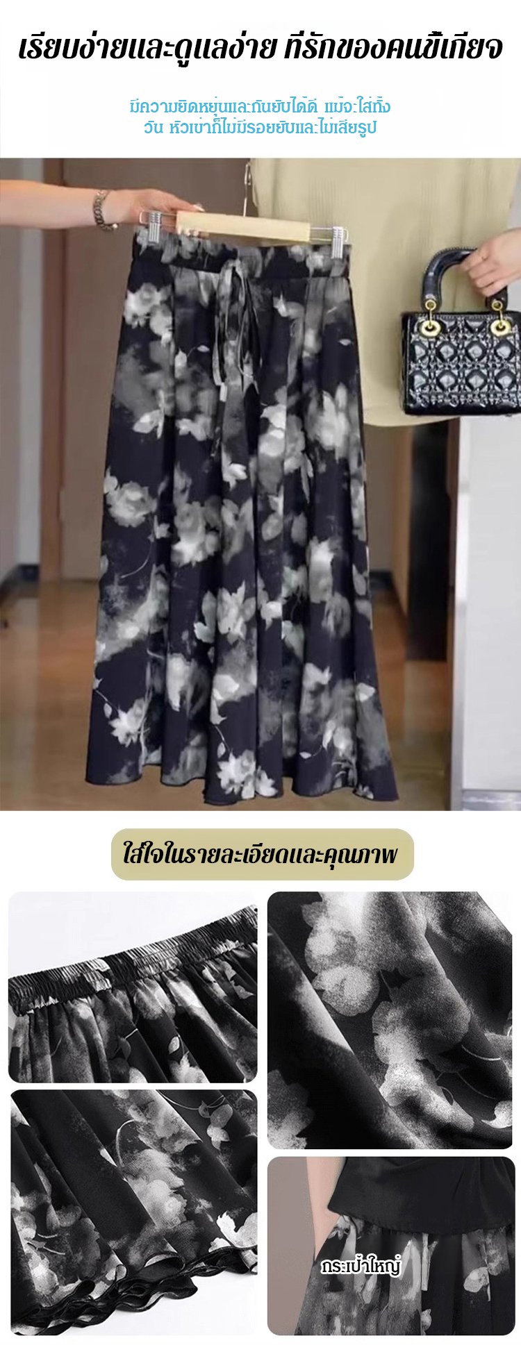 กางเกงกระโปรงผ้าไหมเย็นเอวสูงลำลองของผู้หญิง