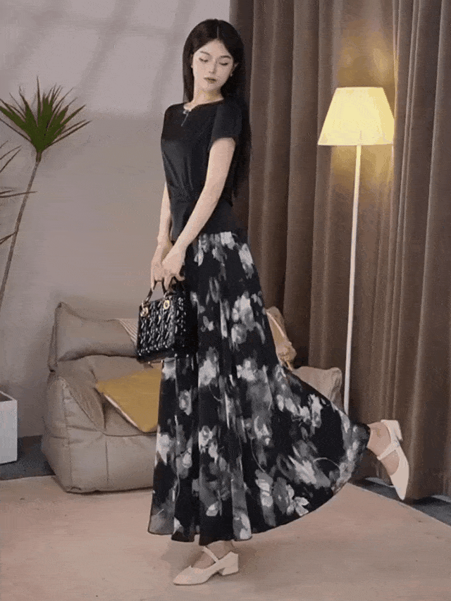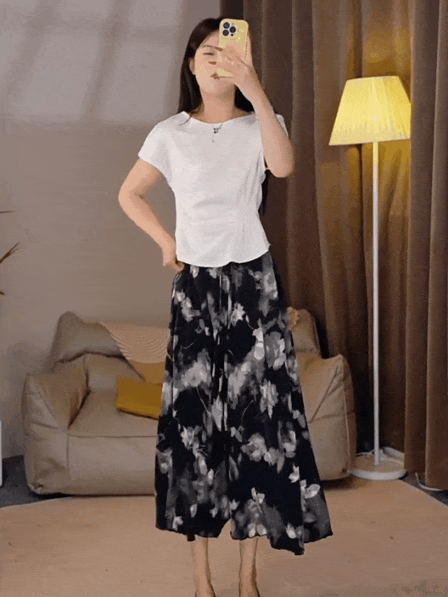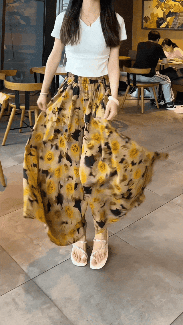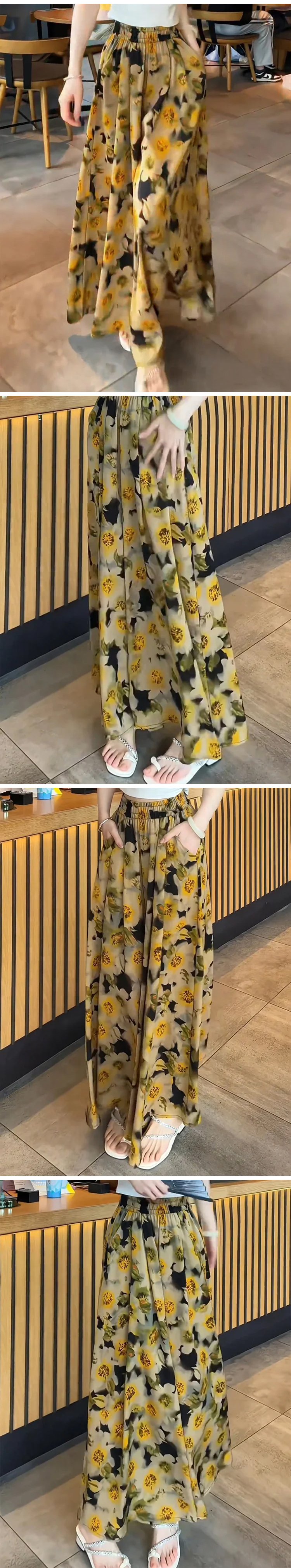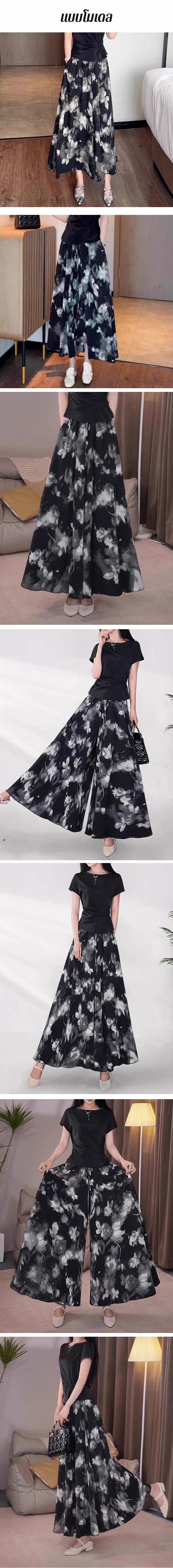 กางเกงกระโปรงผ้าไหมเย็นเอวสูงลำลองของผู้หญิง
